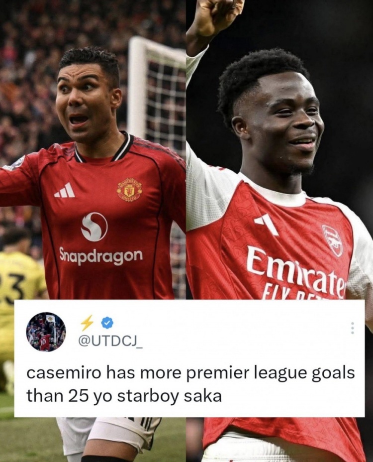 冷常识:34岁的卡塞米罗本赛季英超进球比25岁的萨卡多