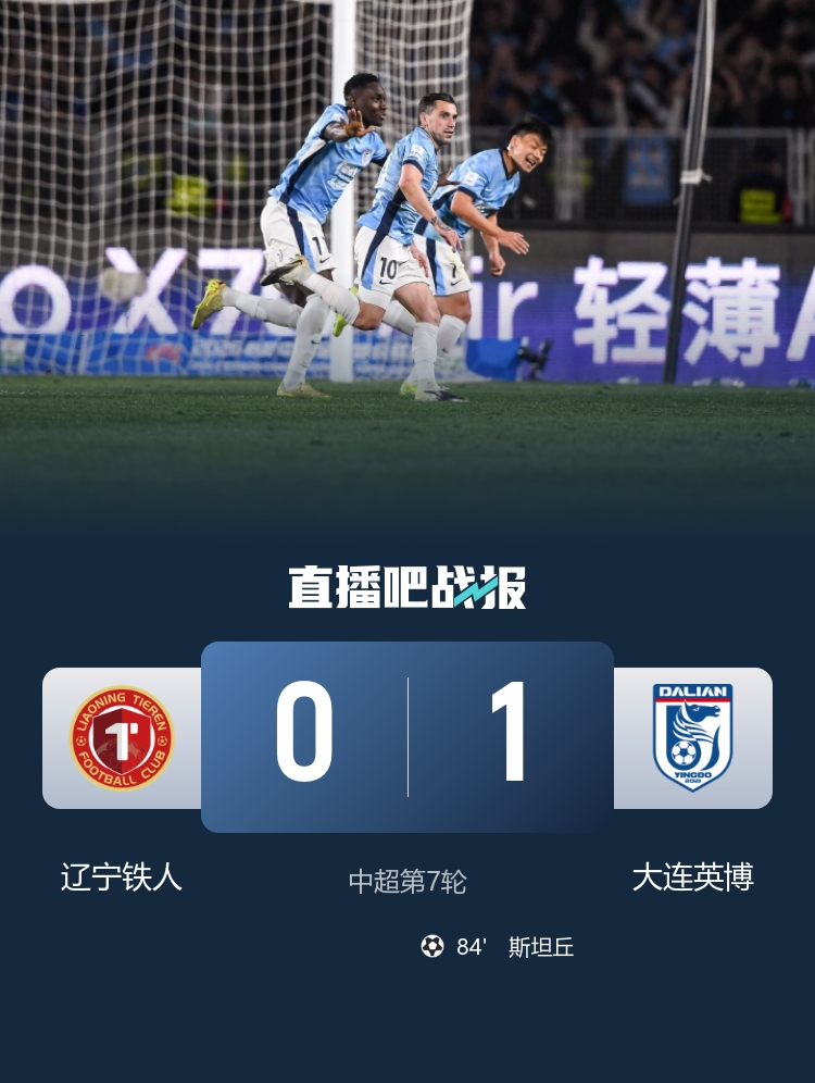 直播吧4月22日讯 中超第7轮,辽宁铁人镇守主场沈阳铁西运动场护卫年夜连英博。易边再战,斯坦丘第84分钟天下波制服。终极辽宁铁人0-1年夜连英博