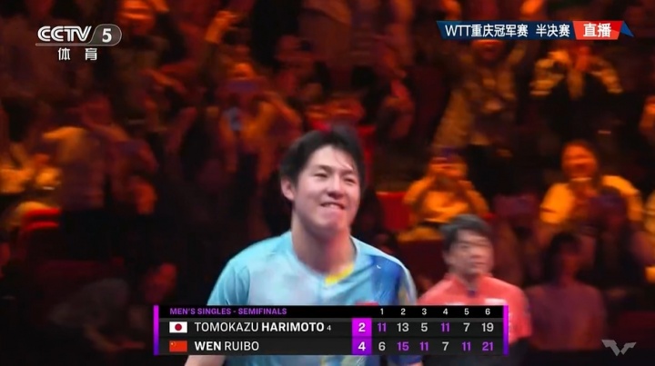 直播吧03月15日讯 WTT头筹赛重庆站男单半决赛,19岁华夏选手温瑞博4-2打败张本智跟,突入决赛,将与小勒布伦争取头筹