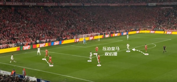 刚刚一终场,拜仁就全员前压,没有给皇马双后腰接球的机遇。