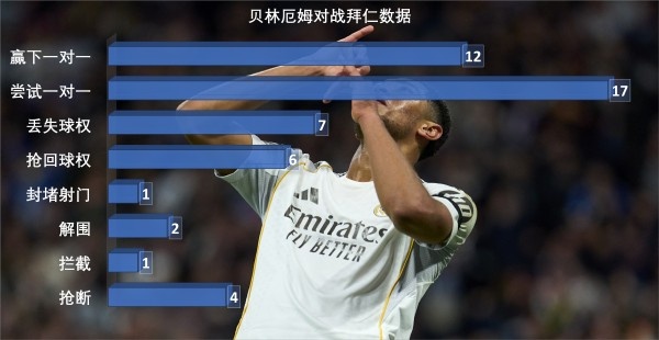 哄骗锋线上姆巴佩跟维尼修斯的速率劣势,寻找出击的机遇。他当作后腰,实验了17次一双一双抗,赢下了此中的12次。由于他的身材劣势,让拜仁的高位策略近乎停业。成果贝林厄姆哪怕屁滚尿流,但他便是可以或许一双一没有输,就招致拜仁这里泛起了没有小的成绩。