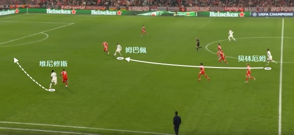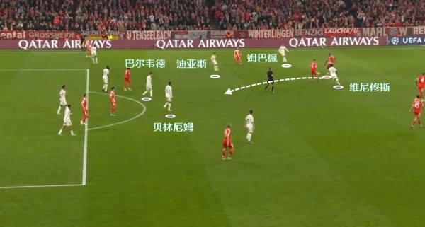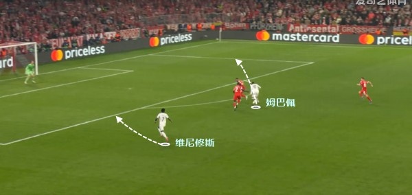 再来望望这一次的防御,照旧是相似的情理,维尼修斯在侧翼高速前插,须要的便是姆巴佩实时传球。经由过程让本方博得被动的势头,来唆使对于方出错。不外起码这一场,皇马并没有算怕这招。