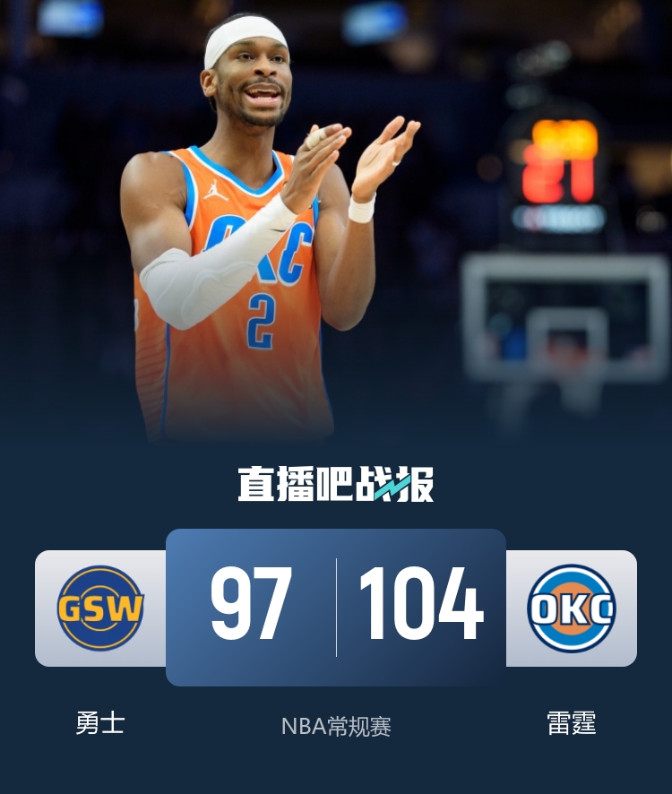 🏀雷霆赛季横扫壮士!SGA27+5+5 桑托斯22+11 波杰姆17+6+6